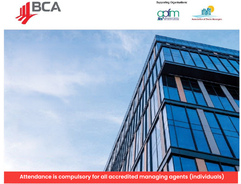 The course, Differentiating and Enhancing Managers' Skillsets: A Practical Approach to Building Defects and Pre-emptive Maintenance which is organised and conducted by BCA, is compulsory for managing agent practitioners who are registered [i.e. CPFM(R)], or seeking to be registered, under the Accredited Managing Agent Scheme recognised by BCA-APFM. Additionally, it benefits and are compulsory too for MA’s who are currently practising or intend to become a managing agent practitioner.